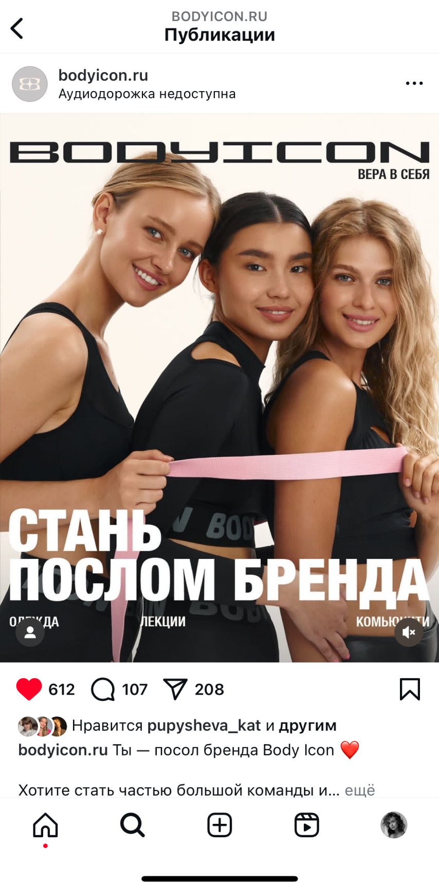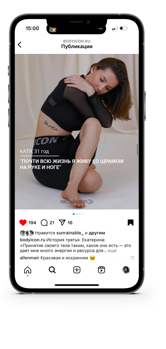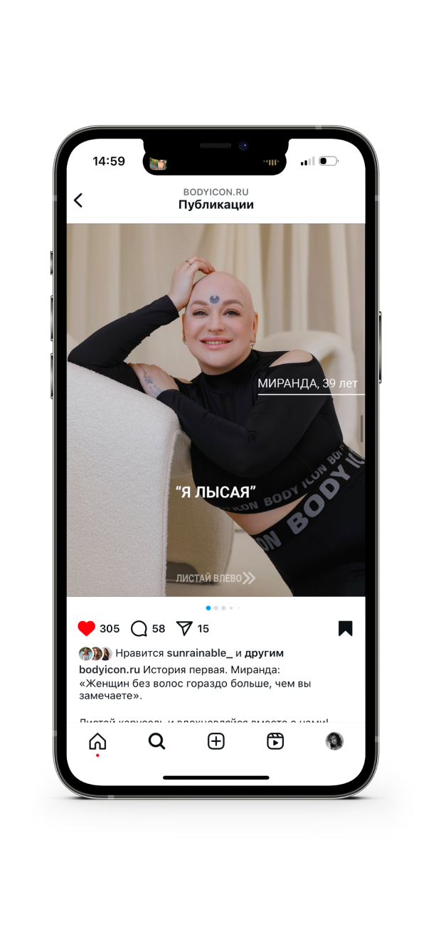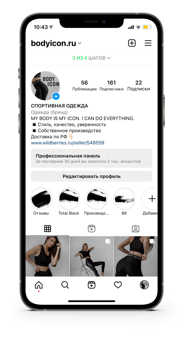 Проект, в котором я с нуля формировала отдел маркетинга и была его тимлидом с 2022 по 2024 год. От 160 подписчиков в Instagram* мы пришли к 10-ти миллионным охватам. Оказавшись в спортивном зале вы, вероятно, встретите там девушку в одежде BodyIcon.